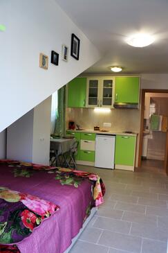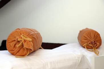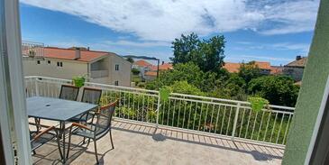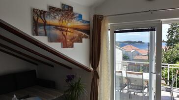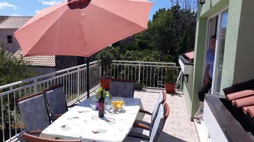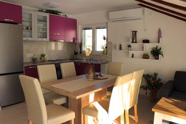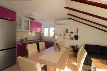 Ferienwohnung bietet Platz für 6 Gäste. Die Betten sind in Schlafzimmern, die es 2 gibt, und in Wohnzimmer, innerhalb einer Gesamtfläche von 62m2, angeordnet. Die Gäste haben eine eigene Terrasse zur Verfügung, auf der sie in warmen Sommernächten genießen können. Das Apartment bietet Meerblick. Es ist erlaubt, Speisen auf dem Gemeinschafts-Grill vorzubereiten. In der Unterkunftseinheit besteht die Möglichkeit des Mitbringens von Haustieren gegen Aufpreis.