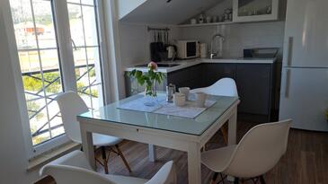 Ferienwohnung bietet Platz für 2 Gäste. Die Betten sind in Schlafzimmern, die es 1 gibt, innerhalb einer Gesamtfläche von 28m2, angeordnet. Die Gäste haben eine eigene Terrasse zur Verfügung, auf der sie in warmen Sommernächten genießen können.