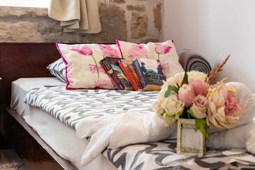 Ferienwohnung bietet Platz für 6 Gäste. Die Betten sind in Schlafzimmern, die es 3 gibt, innerhalb einer Gesamtfläche von 111m2, angeordnet. Die Gäste haben eine eigene Terrasse zur Verfügung, auf der sie in warmen Sommernächten genießen können. Während ihres Aufenthalts können Gäste das gemeinsam zur Nutzung stehende Schwimmbad benutzen.