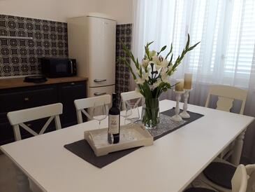 Haus bietet Platz für 8 Gäste. Die Betten sind in Schlafzimmern, die es 4 gibt, innerhalb einer Gesamtfläche von 124m2, angeordnet. Die Gäste haben eine eigene Terrasse zur Verfügung, auf der sie in warmen Sommernächten genießen können. Das Haus bietet Meerblick. Für vollen Genuss und Entspannung gibt es einen privaten Grill für Gäste dieser Unterkunft. Während ihres Aufenthalts können sich Gäste im privaten Schwimmbad entspannen. In der Unterkunftseinheit besteht die Möglichkeit des Mitbringens von Haustieren, und die Dienstleistung ist im Preis der Unterkunft enthalten. Räume der gebuchten Unterkunftseinheit werden nicht in eine Ganze verbunden.