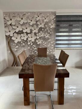 Ferienwohnung bietet Platz für 6 Gäste. Die Betten sind in Schlafzimmern, die es 2 gibt, und in Wohnzimmer, innerhalb einer Gesamtfläche von 72m2, angeordnet. Die Gäste haben eine eigene Terrasse zur Verfügung, auf der sie in warmen Sommernächten genießen können.
