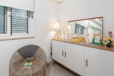 Ferienwohnung bietet Platz für 4 Gäste. Die Betten sind in Schlafzimmern, die es 2 gibt, innerhalb einer Gesamtfläche von 40m2, angeordnet. Die Gäste haben eine eigene Terrasse zur Verfügung, auf der sie in warmen Sommernächten genießen können. Es ist erlaubt, Speisen auf dem Gemeinschafts-Grill vorzubereiten. In der Unterkunftseinheit besteht die Möglichkeit des Mitbringens von Haustieren gegen Aufpreis.