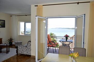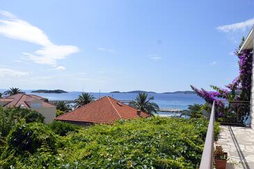 Ferienwohnung bietet Platz für 4 Gäste. Die Betten sind in Schlafzimmern, die es 2 gibt, innerhalb einer Gesamtfläche von 66m2, angeordnet. Die Gäste haben eine eigene Terrasse zur Verfügung, auf der sie in warmen Sommernächten genießen können. Das Apartment bietet Meerblick. Es ist erlaubt, Speisen auf dem Gemeinschafts-Grill vorzubereiten.