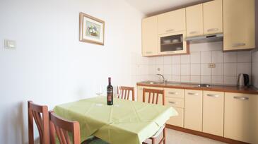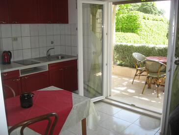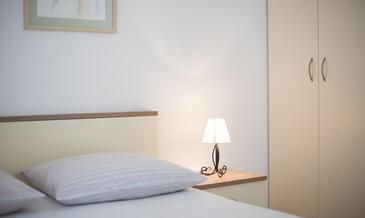 Ferienwohnung bietet Platz für 4 Gäste. Die Betten sind in Schlafzimmern, die es 2 gibt, innerhalb einer Gesamtfläche von 42m2, angeordnet. Die Gäste haben eine eigene Terrasse zur Verfügung, auf der sie in warmen Sommernächten genießen können. Das Apartment bietet Meerblick. Es ist erlaubt, Speisen auf dem Gemeinschafts-Grill vorzubereiten.