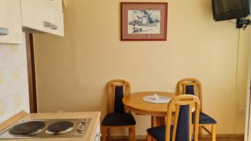 Ferienwohnung bietet Platz für 4 Gäste. Die Betten sind in Schlafzimmern, die es 1 gibt, und in Wohnzimmer, innerhalb einer Gesamtfläche von 30m2, angeordnet. Die Gäste haben eine eigene Terrasse zur Verfügung, auf der sie in warmen Sommernächten genießen können. Es ist erlaubt, Speisen auf dem Gemeinschafts-Grill vorzubereiten.