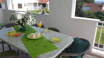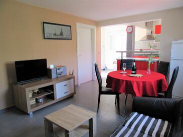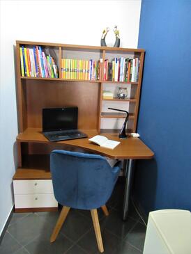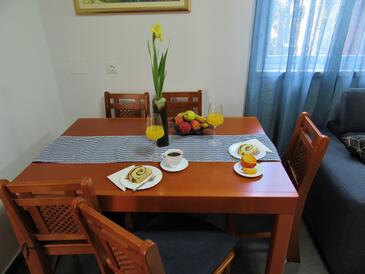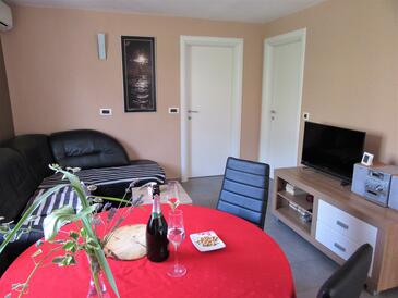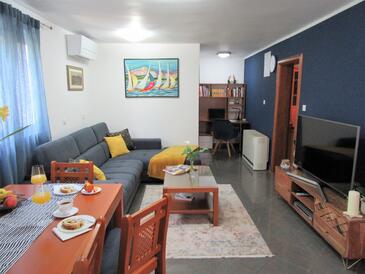 Ferienwohnung bietet Platz für 4 Gäste. Die Betten sind in Schlafzimmern, die es 2 gibt, innerhalb einer Gesamtfläche von 55m2, angeordnet. Die Gäste haben eine eigene Terrasse zur Verfügung, auf der sie in warmen Sommernächten genießen können. Das Apartment bietet Meerblick. Es ist erlaubt, Speisen auf dem Gemeinschafts-Grill vorzubereiten.