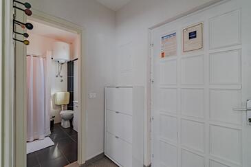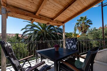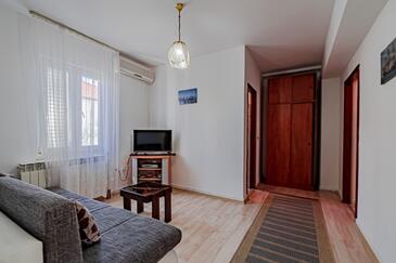 Ferienwohnung bietet Platz für 4 Gäste. Die Betten sind in Schlafzimmern, die es 1 gibt, und in Wohnzimmer, innerhalb einer Gesamtfläche von 41m2, angeordnet. Die Gäste haben eine eigene Terrasse zur Verfügung, auf der sie in warmen Sommernächten genießen können. Das Apartment bietet Meerblick. Es ist erlaubt, Speisen auf dem Gemeinschafts-Grill vorzubereiten.