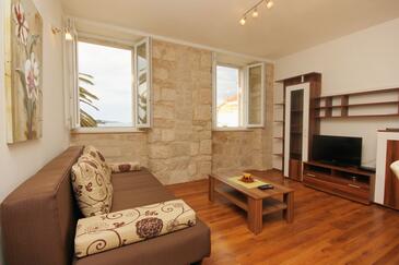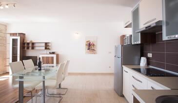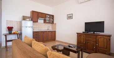 Ferienwohnung bietet Platz für 3 Gäste. Die Betten sind in Schlafzimmern, die es 1 gibt, und in Wohnzimmer, innerhalb einer Gesamtfläche von 40m2, angeordnet. Die Gäste haben eine eigene Terrasse zur Verfügung, auf der sie in warmen Sommernächten genießen können. Das Apartment bietet Meerblick. Es ist erlaubt, Speisen auf dem Gemeinschafts-Grill vorzubereiten.