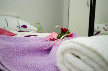 Ferienwohnung bietet Platz für 4 Gäste. Die Betten sind in Schlafzimmern, die es 1 gibt, und in Wohnzimmer, innerhalb einer Gesamtfläche von 40m2, angeordnet. Die Gäste haben eine eigene Terrasse zur Verfügung, auf der sie in warmen Sommernächten genießen können. Das Apartment bietet Meerblick. Für vollen Genuss und Entspannung gibt es einen privaten Grill für Gäste dieser Unterkunft.