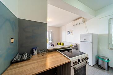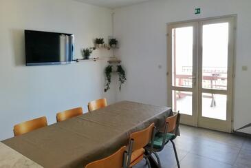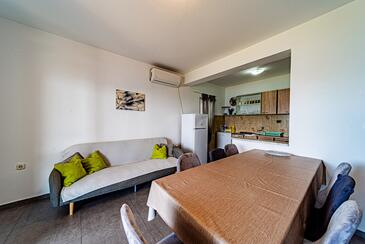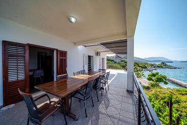 Ferienwohnung bietet Platz für 8 Gäste. Die Betten sind in Schlafzimmern, die es 4 gibt, innerhalb einer Gesamtfläche von 93m2, angeordnet. Die Gäste haben eine eigene Terrasse zur Verfügung, auf der sie in warmen Sommernächten genießen können. Das Apartment bietet Meerblick. Es ist erlaubt, Speisen auf dem Gemeinschafts-Grill vorzubereiten.