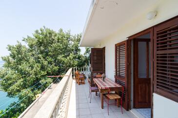 Ferienwohnung bietet Platz für 5 Gäste. Die Betten sind in Schlafzimmern, die es 2 gibt, innerhalb einer Gesamtfläche von 31m2, angeordnet. Die Gäste haben eine eigene Terrasse zur Verfügung, auf der sie in warmen Sommernächten genießen können. Das Apartment bietet Meerblick. Es ist erlaubt, Speisen auf dem Gemeinschafts-Grill vorzubereiten. In der Unterkunftseinheit besteht die Möglichkeit des Mitbringens von Haustieren gegen Aufpreis.