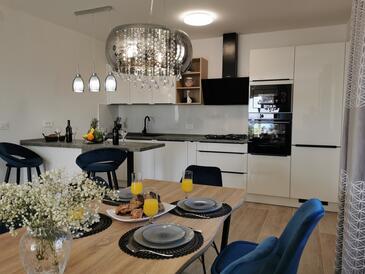 Haus bietet Platz für 4 Gäste. Die Betten sind in Schlafzimmern, die es 2 gibt, innerhalb einer Gesamtfläche von 80m2, angeordnet. Die Gäste haben eine eigene Terrasse zur Verfügung, auf der sie in warmen Sommernächten genießen können. Das Haus bietet Meerblick. Für vollen Genuss und Entspannung gibt es einen privaten Grill für Gäste dieser Unterkunft.