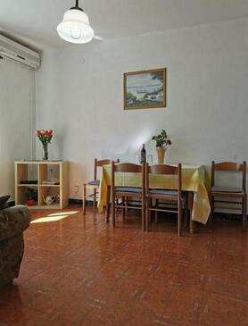 Haus bietet Platz für 12 Gäste. Die Betten sind in Schlafzimmern, die es 5 gibt, und in Wohnzimmer, innerhalb einer Gesamtfläche von 111m2, angeordnet. Die Gäste haben eine eigene Terrasse zur Verfügung, auf der sie in warmen Sommernächten genießen können. Das Haus bietet Meerblick. Es ist erlaubt, Speisen auf dem Gemeinschafts-Grill vorzubereiten. In der Unterkunftseinheit besteht die Möglichkeit des Mitbringens von Haustieren, und die Dienstleistung ist im Preis der Unterkunft enthalten.