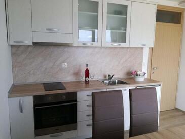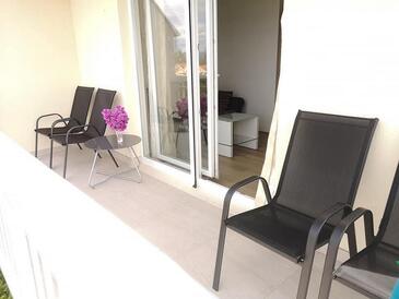 Ferienwohnung bietet Platz für 4 Gäste. Die Betten sind in Schlafzimmern, die es 2 gibt, innerhalb einer Gesamtfläche von 42m2, angeordnet. Die Gäste haben eine eigene Terrasse zur Verfügung, auf der sie in warmen Sommernächten genießen können. Das Apartment bietet Meerblick. Es ist erlaubt, Speisen auf dem Gemeinschafts-Grill vorzubereiten.