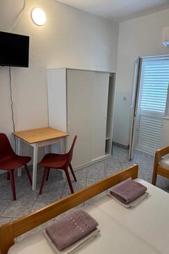 Ferienwohnung bietet Platz für 9 Gäste. Die Betten sind in Schlafzimmern, die es 3 gibt, innerhalb einer Gesamtfläche von 64m2, angeordnet. Die Gäste haben eine eigene Terrasse zur Verfügung, auf der sie in warmen Sommernächten genießen können. Es ist erlaubt, Speisen auf dem Gemeinschafts-Grill vorzubereiten.