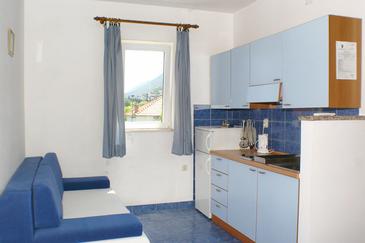 Ferienwohnung bietet Platz für 4 Gäste. Die Betten sind in Schlafzimmern, die es 1 gibt, und in Esszimmer, innerhalb einer Gesamtfläche von 26m2, angeordnet. Die Gäste haben eine eigene Terrasse zur Verfügung, auf der sie in warmen Sommernächten genießen können. Es ist erlaubt, Speisen auf dem Gemeinschafts-Grill vorzubereiten. In der Unterkunftseinheit besteht die Möglichkeit des Mitbringens von Haustieren gegen Aufpreis.