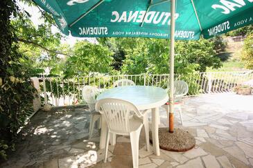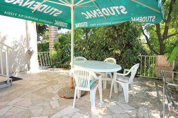 Ferienwohnung bietet Platz für 5 Gäste. Die Betten sind in Schlafzimmern, die es 2 gibt, innerhalb einer Gesamtfläche von 50m2, angeordnet. Die Gäste haben eine eigene Terrasse zur Verfügung, auf der sie in warmen Sommernächten genießen können. Das Apartment bietet Meerblick. Es ist erlaubt, Speisen auf dem Gemeinschafts-Grill vorzubereiten. In der Unterkunftseinheit besteht die Möglichkeit des Mitbringens von Haustieren gegen Aufpreis.