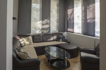 Ferienwohnung bietet Platz für 6 Gäste. Die Betten sind in Schlafzimmern, die es 2 gibt, und in Wohnzimmer, innerhalb einer Gesamtfläche von 70m2, angeordnet. Die Gäste haben eine eigene Terrasse zur Verfügung, auf der sie in warmen Sommernächten genießen können. Es ist erlaubt, Speisen auf dem Gemeinschafts-Grill vorzubereiten.