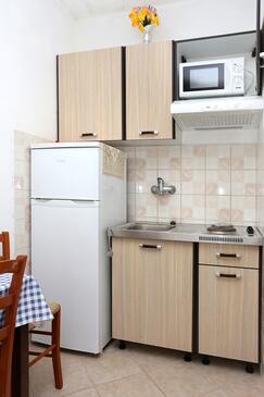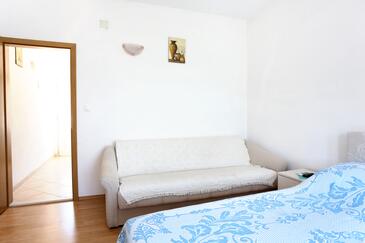 Ferienwohnung bietet Platz für 3 Gäste. Die Betten sind in Schlafzimmern, die es 1 gibt, innerhalb einer Gesamtfläche von 24m2, angeordnet. Die Gäste haben eine eigene Terrasse zur Verfügung, auf der sie in warmen Sommernächten genießen können. Das Apartment bietet Meerblick. Es ist erlaubt, Speisen auf dem Gemeinschafts-Grill vorzubereiten.