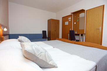 Zimmer bietet Platz für 2 Gäste. Die Betten sind in Schlafzimmern, die es 1 gibt, innerhalb einer Gesamtfläche von 19m2, angeordnet. Die Gäste haben einen eigenen Balkon zur Verfügung, auf der sie in warmen Sommernächten genießen können. In der Unterkunftseinheit besteht die Möglichkeit des Mitbringens von Haustieren gegen Aufpreis. Die reservierte Unterkunftseinheit ist ein Zimmer mit eigenem Badezimmer ohne die Möglichkeit der Nutzung einer Küche.
