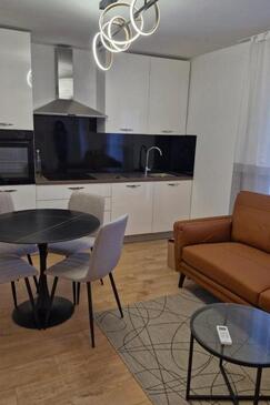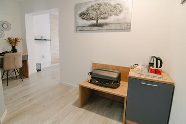 Ferienwohnung bietet Platz für 4 Gäste. Die Betten sind in Schlafzimmern, die es 2 gibt, innerhalb einer Gesamtfläche von 61m2, angeordnet. Die Gäste haben eine eigene Terrasse zur Verfügung, auf der sie in warmen Sommernächten genießen können.