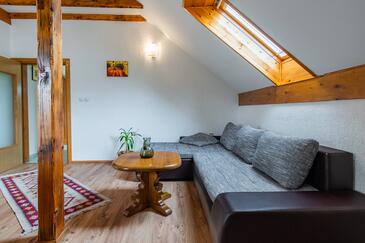 Ferienwohnung bietet Platz für 4 Gäste. Die Betten sind in Schlafzimmern, die es 2 gibt, innerhalb einer Gesamtfläche von 60m2, angeordnet. Die Gäste haben einen eigenen Balkon zur Verfügung, auf der sie in warmen Sommernächten genießen können. Es ist erlaubt, Speisen auf dem Gemeinschafts-Grill vorzubereiten.