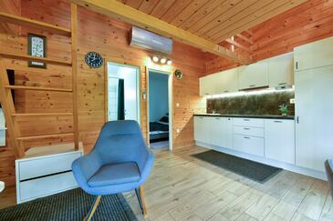 Haus bietet Platz für 4 Gäste. Die Betten sind in Schlafzimmern, die es 2 gibt, innerhalb einer Gesamtfläche von 37m2, angeordnet. Die Gäste haben eine eigene Terrasse zur Verfügung, auf der sie in warmen Sommernächten genießen können. Für vollen Genuss und Entspannung gibt es einen privaten Grill für Gäste dieser Unterkunft.