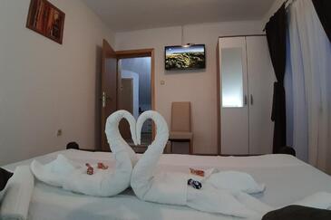Ferienwohnung bietet Platz für 5 Gäste. Die Betten sind in Schlafzimmern, die es 2 gibt, innerhalb einer Gesamtfläche von 62m2, angeordnet. Die Gäste haben eine eigene Terrasse zur Verfügung, auf der sie in warmen Sommernächten genießen können. Es ist erlaubt, Speisen auf dem Gemeinschafts-Grill vorzubereiten. In der Unterkunftseinheit besteht die Möglichkeit des Mitbringens von Haustieren gegen Aufpreis.