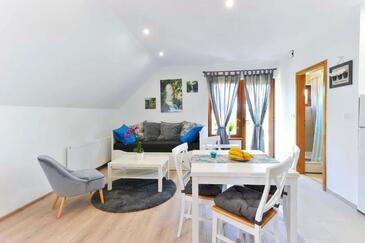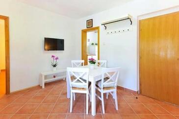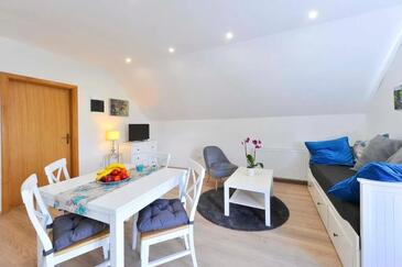 Ferienwohnung bietet Platz für 5 Gäste. Die Betten sind in Schlafzimmern, die es 2 gibt, und in Wohnzimmer, innerhalb einer Gesamtfläche von 49m2, angeordnet. Die Gäste haben eine eigene Terrasse zur Verfügung, auf der sie in warmen Sommernächten genießen können. Es ist erlaubt, Speisen auf dem Gemeinschafts-Grill vorzubereiten. In der Unterkunftseinheit besteht die Möglichkeit des Mitbringens von Haustieren gegen Aufpreis.