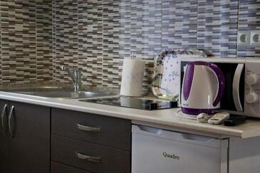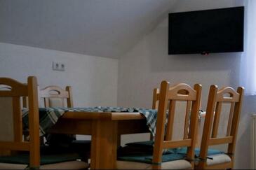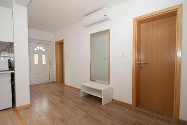 Ferienwohnung bietet Platz für 5 Gäste. Die Betten sind in Schlafzimmern, die es 2 gibt, und in Wohnzimmer, innerhalb einer Gesamtfläche von 57m2, angeordnet. Die Gäste haben eine eigene Terrasse zur Verfügung, auf der sie in warmen Sommernächten genießen können.