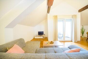 Ferienwohnung bietet Platz für 6 Gäste. Die Betten sind in Schlafzimmern, die es 2 gibt, und in Wohnzimmer, innerhalb einer Gesamtfläche von 80m2, angeordnet. Die Gäste haben einen eigenen Balkon zur Verfügung, auf der sie in warmen Sommernächten genießen können. Für vollen Genuss und Entspannung gibt es einen privaten Grill für Gäste dieser Unterkunft.