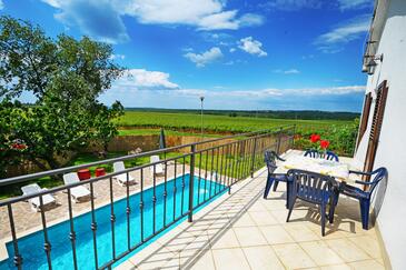 Haus bietet Platz für 8 Gäste. Die Betten sind in Schlafzimmern, die es 4 gibt, innerhalb einer Gesamtfläche von 167m2, angeordnet. Die Gäste haben eine eigene Terrasse zur Verfügung, auf der sie in warmen Sommernächten genießen können. Das Haus bietet Meerblick. Für vollen Genuss und Entspannung gibt es einen privaten Grill für Gäste dieser Unterkunft. Während ihres Aufenthalts können sich Gäste im privaten Schwimmbad entspannen. In der Unterkunftseinheit besteht die Möglichkeit des Mitbringens von Haustieren gegen Aufpreis. In der gebuchten Unterkunftseinheit zahlt man am Ort ein Depositum ( der Preis ist an der Internetseite angeführt ).