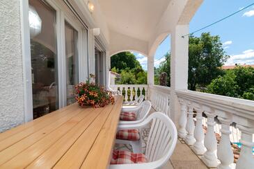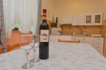 Ferienwohnung bietet Platz für 9 Gäste. Die Betten sind in Schlafzimmern, die es 2 gibt, und in Wohnzimmer, innerhalb einer Gesamtfläche von 71m2, angeordnet. Die Gäste haben eine eigene Terrasse zur Verfügung, auf der sie in warmen Sommernächten genießen können. Es ist erlaubt, Speisen auf dem Gemeinschafts-Grill vorzubereiten. Während ihres Aufenthalts können Gäste das gemeinsam zur Nutzung stehende Schwimmbad benutzen. In der Unterkunftseinheit besteht die Möglichkeit des Mitbringens von Haustieren gegen Aufpreis. In der gebuchten Unterkunftseinheit zahlt man am Ort ein Depositum ( der Preis ist an der Internetseite angeführt ).
