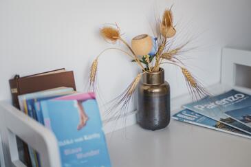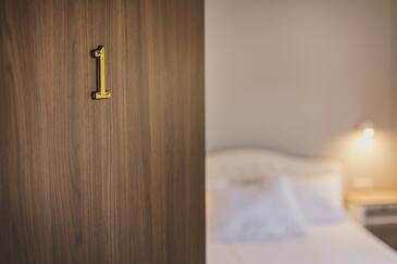 Zimmer bietet Platz für 2 Gäste. Die Betten sind in Schlafzimmern, die es 1 gibt, innerhalb einer Gesamtfläche von 24m2, angeordnet. Die Gäste haben einen eigenen Balkon zur Verfügung, auf der sie in warmen Sommernächten genießen können. In der Unterkunftseinheit besteht die Möglichkeit des Mitbringens von Haustieren gegen Aufpreis. Die reservierte Unterkunftseinheit ist ein Zimmer mit eigenem Badezimmer ohne die Möglichkeit der Nutzung einer Küche.