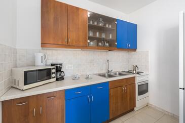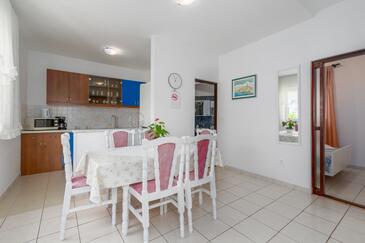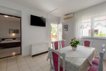 Ferienwohnung bietet Platz für 5 Gäste. Die Betten sind in Schlafzimmern, die es 2 gibt, innerhalb einer Gesamtfläche von 45m2, angeordnet. Die Gäste haben eine eigene Terrasse zur Verfügung, auf der sie in warmen Sommernächten genießen können. Es ist erlaubt, Speisen auf dem Gemeinschafts-Grill vorzubereiten. In der Unterkunftseinheit besteht die Möglichkeit des Mitbringens von Haustieren gegen Aufpreis.