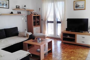 Ferienwohnung bietet Platz für 3 Gäste. Die Betten sind in Schlafzimmern, die es 1 gibt, und in Wohnzimmer, innerhalb einer Gesamtfläche von 56m2, angeordnet. Die Gäste haben eine eigene Terrasse zur Verfügung, auf der sie in warmen Sommernächten genießen können. Das Apartment bietet Meerblick. Es ist erlaubt, Speisen auf dem Gemeinschafts-Grill vorzubereiten.