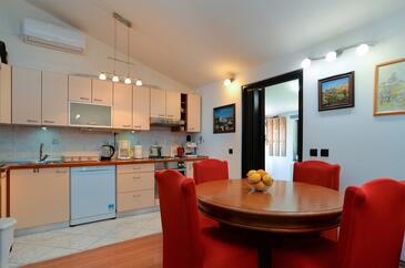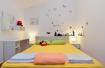 Ferienwohnung bietet Platz für 6 Gäste. Die Betten sind in Schlafzimmern, die es 3 gibt, innerhalb einer Gesamtfläche von 57m2, angeordnet. Die Gäste haben eine eigene Terrasse zur Verfügung, auf der sie in warmen Sommernächten genießen können. Es ist erlaubt, Speisen auf dem Gemeinschafts-Grill vorzubereiten.