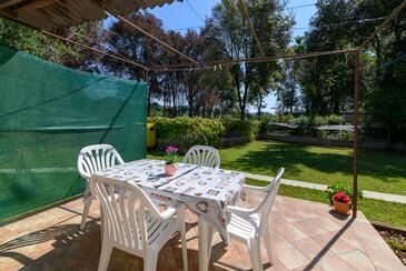 Ferienwohnung bietet Platz für 7 Gäste. Die Betten sind in Schlafzimmern, die es 3 gibt, innerhalb einer Gesamtfläche von 75m2, angeordnet. Die Gäste haben eine eigene Terrasse zur Verfügung, auf der sie in warmen Sommernächten genießen können. In der gebuchten Unterkunftseinheit zahlt man am Ort ein Depositum ( der Preis ist an der Internetseite angeführt ).