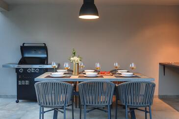 Haus bietet Platz für 6 Gäste. Die Betten sind in Schlafzimmern, die es 3 gibt, innerhalb einer Gesamtfläche von 135m2, angeordnet. Die Gäste haben eine eigene Terrasse zur Verfügung, auf der sie in warmen Sommernächten genießen können. Für vollen Genuss und Entspannung gibt es einen privaten Grill für Gäste dieser Unterkunft. Während ihres Aufenthalts können sich Gäste im privaten Schwimmbad entspannen. In der gebuchten Unterkunftseinheit zahlt man am Ort ein Depositum ( der Preis ist an der Internetseite angeführt ).