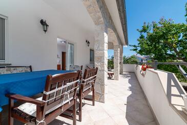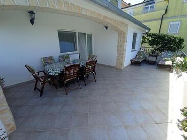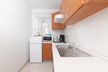 Ferienwohnung bietet Platz für 4 Gäste. Die Betten sind in Schlafzimmern, die es 2 gibt, innerhalb einer Gesamtfläche von 39m2, angeordnet. Die Gäste haben eine eigene Terrasse zur Verfügung, auf der sie in warmen Sommernächten genießen können. Es ist erlaubt, Speisen auf dem Gemeinschafts-Grill vorzubereiten.