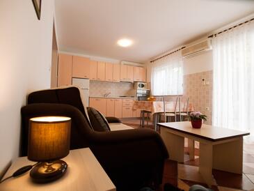 Ferienwohnung bietet Platz für 4 Gäste. Die Betten sind in Schlafzimmern, die es 1 gibt, und in Wohnzimmer, innerhalb einer Gesamtfläche von 42m2, angeordnet. Die Gäste haben eine eigene Terrasse zur Verfügung, auf der sie in warmen Sommernächten genießen können. Für vollen Genuss und Entspannung gibt es einen privaten Grill für Gäste dieser Unterkunft. In der Unterkunftseinheit besteht die Möglichkeit des Mitbringens von Haustieren gegen Aufpreis. In der gebuchten Unterkunftseinheit zahlt man am Ort ein Depositum ( der Preis ist an der Internetseite angeführt ).