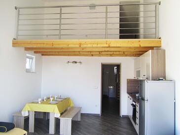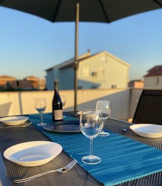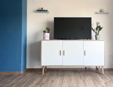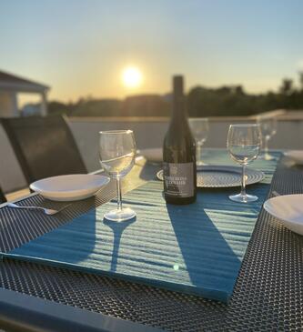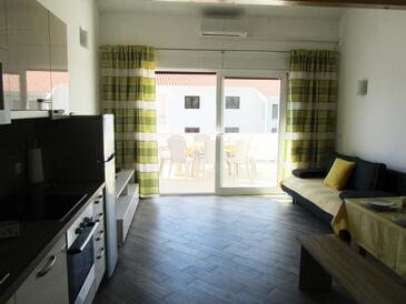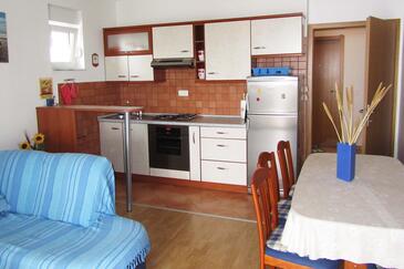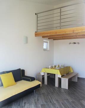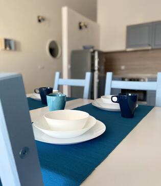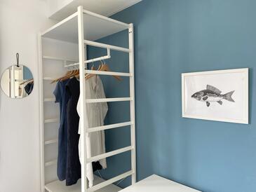 Ferienwohnung bietet Platz für 2 Gäste. Die Betten sind in Schlafzimmern, die es 1 gibt, innerhalb einer Gesamtfläche von 39m2, angeordnet. Die Gäste haben eine eigene Terrasse zur Verfügung, auf der sie in warmen Sommernächten genießen können. Das Apartment bietet Meerblick. Es ist erlaubt, Speisen auf dem Gemeinschafts-Grill vorzubereiten.
