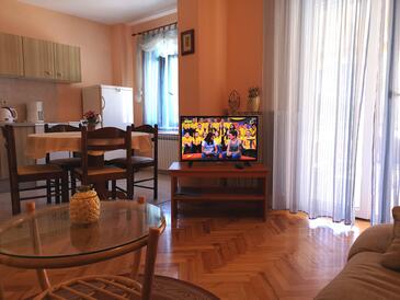 Ferienwohnung bietet Platz für 5 Gäste. Die Betten sind in Schlafzimmern, die es 2 gibt, und in Wohnzimmer, innerhalb einer Gesamtfläche von 97m2, angeordnet. Die Gäste haben eine eigene Terrasse zur Verfügung, auf der sie in warmen Sommernächten genießen können. Es ist erlaubt, Speisen auf dem Gemeinschafts-Grill vorzubereiten. Während ihres Aufenthalts können Gäste das gemeinsam zur Nutzung stehende Schwimmbad benutzen. In der Unterkunftseinheit besteht die Möglichkeit des Mitbringens von Haustieren gegen Aufpreis. In der gebuchten Unterkunftseinheit zahlt man am Ort ein Depositum ( der Preis ist an der Internetseite angeführt ).