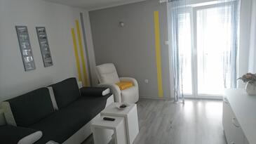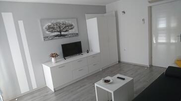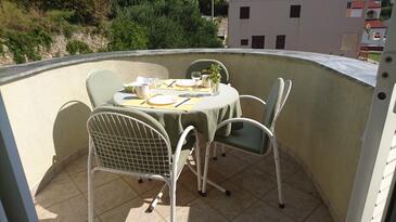 Ferienwohnung bietet Platz für 4 Gäste. Die Betten sind in Schlafzimmern, die es 1 gibt, und in Wohnzimmer, innerhalb einer Gesamtfläche von 44m2, angeordnet. Die Gäste haben eine eigene Terrasse zur Verfügung, auf der sie in warmen Sommernächten genießen können. Das Apartment bietet Meerblick. Es ist erlaubt, Speisen auf dem Gemeinschafts-Grill vorzubereiten.