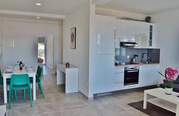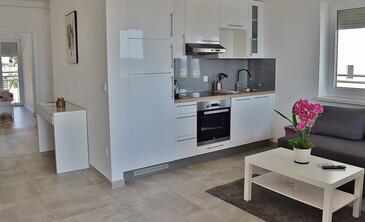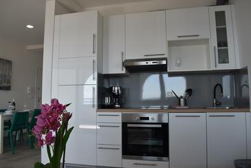 Ferienwohnung bietet Platz für 2 Gäste. Die Betten sind in Schlafzimmern, die es 1 gibt, innerhalb einer Gesamtfläche von 45m2, angeordnet. Die Gäste haben eine eigene Terrasse zur Verfügung, auf der sie in warmen Sommernächten genießen können. Das Apartment bietet Meerblick. Es ist erlaubt, Speisen auf dem Gemeinschafts-Grill vorzubereiten.