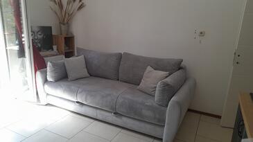 Ferienwohnung bietet Platz für 4 Gäste. Die Betten sind in Schlafzimmern, die es 2 gibt, innerhalb einer Gesamtfläche von 52m2, angeordnet. Die Gäste haben eine eigene Terrasse zur Verfügung, auf der sie in warmen Sommernächten genießen können. Es ist erlaubt, Speisen auf dem Gemeinschafts-Grill vorzubereiten. In der Unterkunftseinheit besteht die Möglichkeit des Mitbringens von Haustieren gegen Aufpreis.