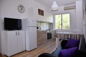 Ferienwohnung bietet Platz für 4 Gäste. Die Betten sind in Schlafzimmern, die es 2 gibt, innerhalb einer Gesamtfläche von 49m2, angeordnet. Die Gäste haben einen eigenen Balkon zur Verfügung, auf der sie in warmen Sommernächten genießen können. Das Apartment bietet Meerblick. Es ist erlaubt, Speisen auf dem Gemeinschafts-Grill vorzubereiten.