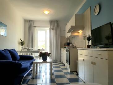 Ferienwohnung bietet Platz für 2 Gäste. Die Betten sind in Schlafzimmern, die es 1 gibt, innerhalb einer Gesamtfläche von 35m2, angeordnet. Die Gäste haben eine eigene Terrasse zur Verfügung, auf der sie in warmen Sommernächten genießen können. Es ist erlaubt, Speisen auf dem Gemeinschafts-Grill vorzubereiten. In der Unterkunftseinheit besteht die Möglichkeit des Mitbringens von Haustieren gegen Aufpreis.