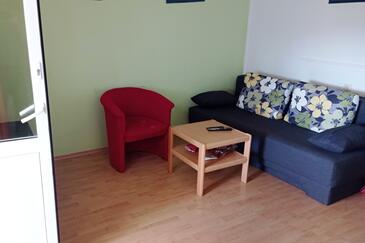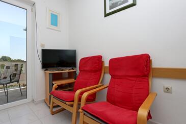 Ferienwohnung bietet Platz für 4 Gäste. Die Betten sind in Schlafzimmern, die es 2 gibt, innerhalb einer Gesamtfläche von 40m2, angeordnet. Die Gäste haben eine eigene Terrasse zur Verfügung, auf der sie in warmen Sommernächten genießen können. Das Apartment bietet Meerblick. Es ist erlaubt, Speisen auf dem Gemeinschafts-Grill vorzubereiten. In der Unterkunftseinheit besteht die Möglichkeit des Mitbringens von Haustieren gegen Aufpreis.