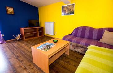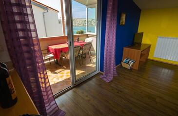 Ferienwohnung bietet Platz für 5 Gäste. Die Betten sind in Schlafzimmern, die es 2 gibt, und in Wohnzimmer, innerhalb einer Gesamtfläche von 62m2, angeordnet. Die Gäste haben eine eigene Terrasse zur Verfügung, auf der sie in warmen Sommernächten genießen können. Das Apartment bietet Meerblick. Es ist erlaubt, Speisen auf dem Gemeinschafts-Grill vorzubereiten.